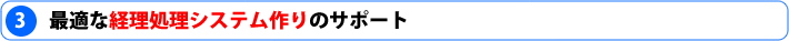 経理処理システムの取り巻く環境は常に一定ではありません。今では経理処理には欠かすことのできないパソコンなどの事務環境、スタッフの経理・PC処理能力など、常に変化しています。それぞれのあらゆる環境に合わせた経理処理システムの構築をじっくりとお話を伺いながら作り上げていきます。退職などによる経理スタッフの異動の時もしっかり当事務所がバックアップします。